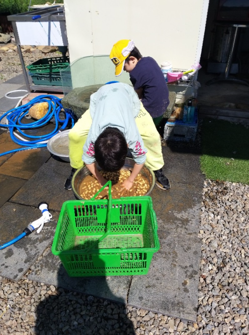 땅속에서 땅콩이라는 보물도 캐보았습니다. 처음보는 아이들은 나무에서 땅콩이 자라는줄 알지요..