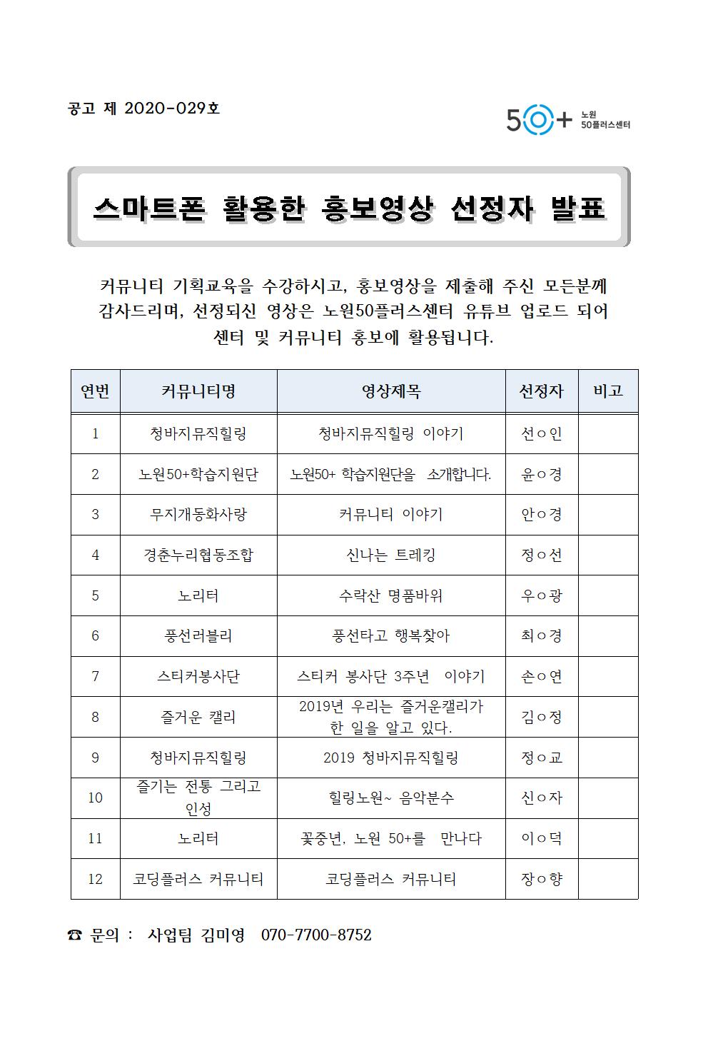 서울시 노원센터 | 스마트폰 활용한 홍보영상 선정자 발표