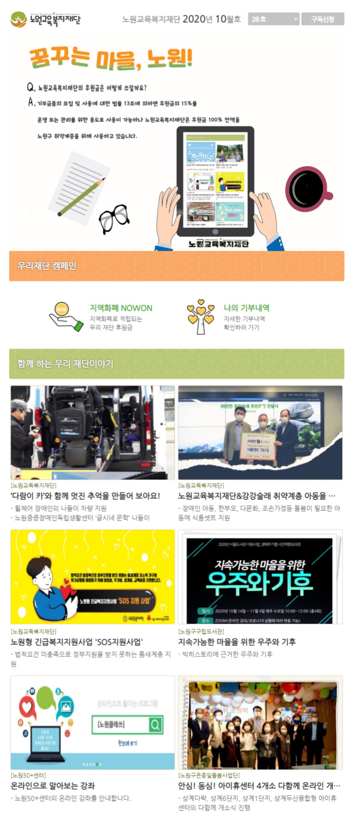 서울시 노원센터 | 노원교육복지재단 뉴스레터"꿈꾸는 마을, 노원" 발행 (2020년 10월호)