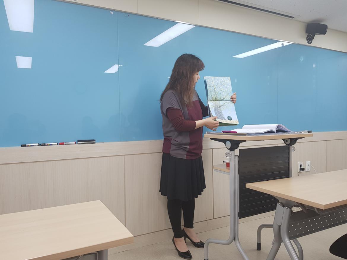 '나무는 변신쟁이' 과학동화를 지도 중 이신 박혜원 강사님    이십니다.