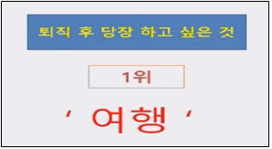 그럼에도 불구하고 퇴직 후 당장 하고 싶은 것 1위는 ‘여행’ 이다.
