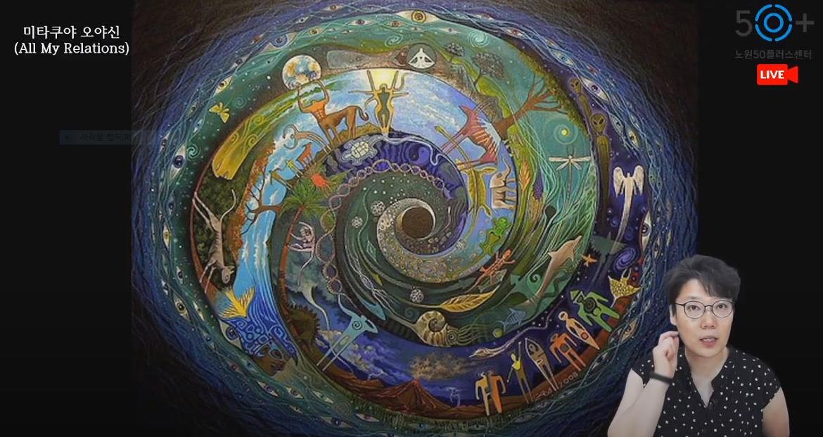 옆의 존재도 같은 근원에서 생겨난 모두 연결되어 있다는 세계관을 과학이 밝혀낸 현대의 기원이야기를 형상화했다.