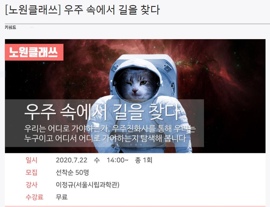 이정규 선생님의 노원클래쓰 온라인 강의 [우주 속에서 길을 찾다] Start !!