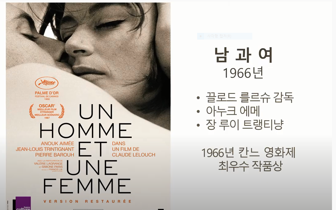 남과 여(男과 女, Un homme et une femme)는 클로드 를루슈가 감독하고 아누크 에메와 장루이 트린티냥이 출연한 1966년의 프랑스 영화이다. 클로드 를루슈와 삐에르 유이터회벤이 각본을 쓴 이 작품은 우연히 아이들의 기숙학교에서 우연히 만나게 된 젊은 과부와 홀아비의 이야기로, 그들의 사망한 배우자에 대한 기억으로 싹튼 관계가 복잡해진다. 이 영화는 천연색과 흑백, 세피아 색조의 사진이 빈번하게 전환되는 멋진 사진 기법과 인상적인 프랑시스 레이의 음악으로 유명하다.