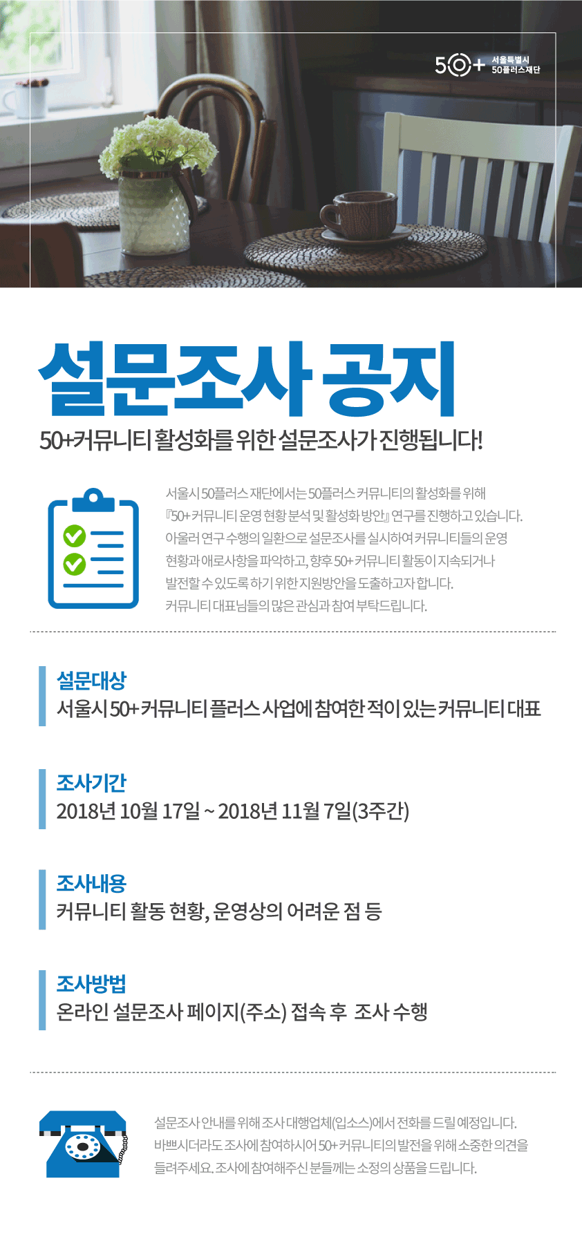 서울시 50플러스재단 | 50+커뮤니티 활성화를 위한 설문조사 진행