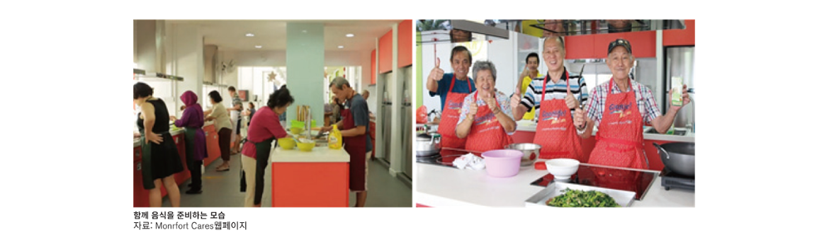 를 맺을 수 있도록 하는 프로그램이다. 센터는 조리 공간을 제공하고, 고령자들은 함께 대화를 나누고, 특히 독거 고령자와 함께 식사를 준비하고, 조리하여 외