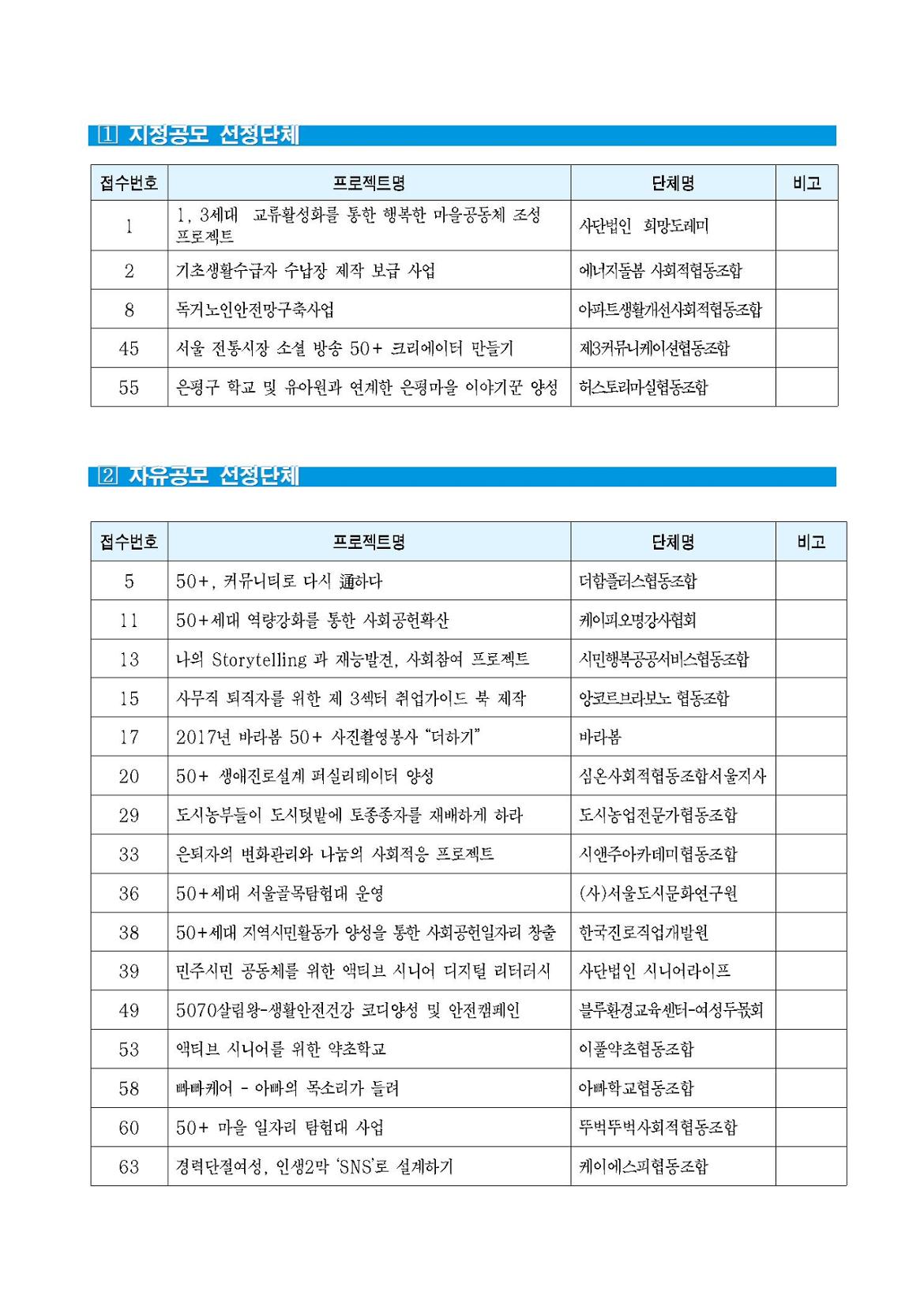 2017년 50+단체지원 공모사업에 관심을 갖고 지원해 주셔서 감사드립니다.