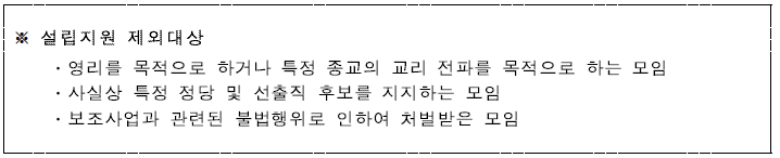 ○ 지원금액 : 모임별 200만원 이내의 설립지원금