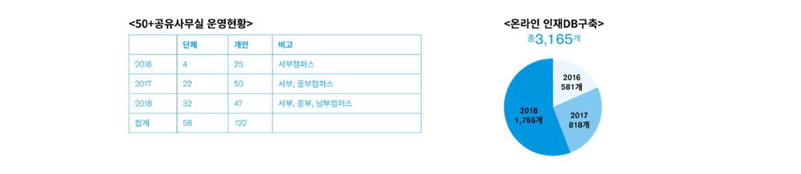 맞춤형 인재DB구축을 통해 우수 인재가 적재적소에배치될 수 있도록 50+세대의 인재 DB를 구축하였다.