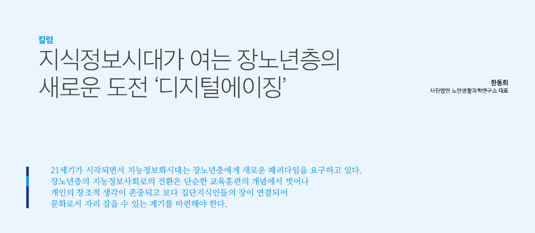"21세기가 시작되면서 지능정보화시대는 장노년층에게 새로운 패러다임을 요구하고 있다.
