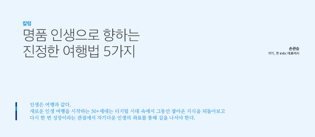 그렇다. 인생은 여행이다. 특히 직장 이후의 2막, 혹은 3막 인생은 여행과 유사점이 많다. 그 가운데서 어떤 삶의 통찰력을 얻을 수 있을까? 다섯 가지로 정리하면 다음과 같다.