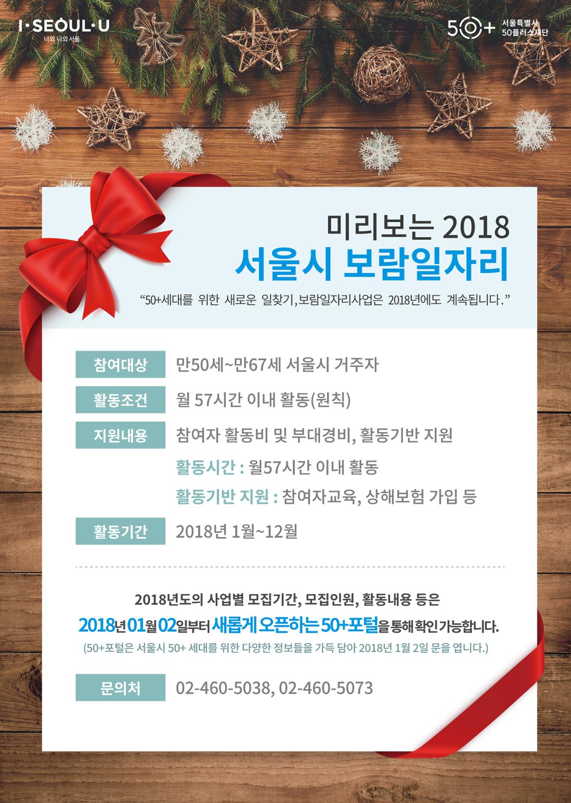 서울시 50플러스재단 | 미리보는 2018 서울시 보람일자리사업안내
