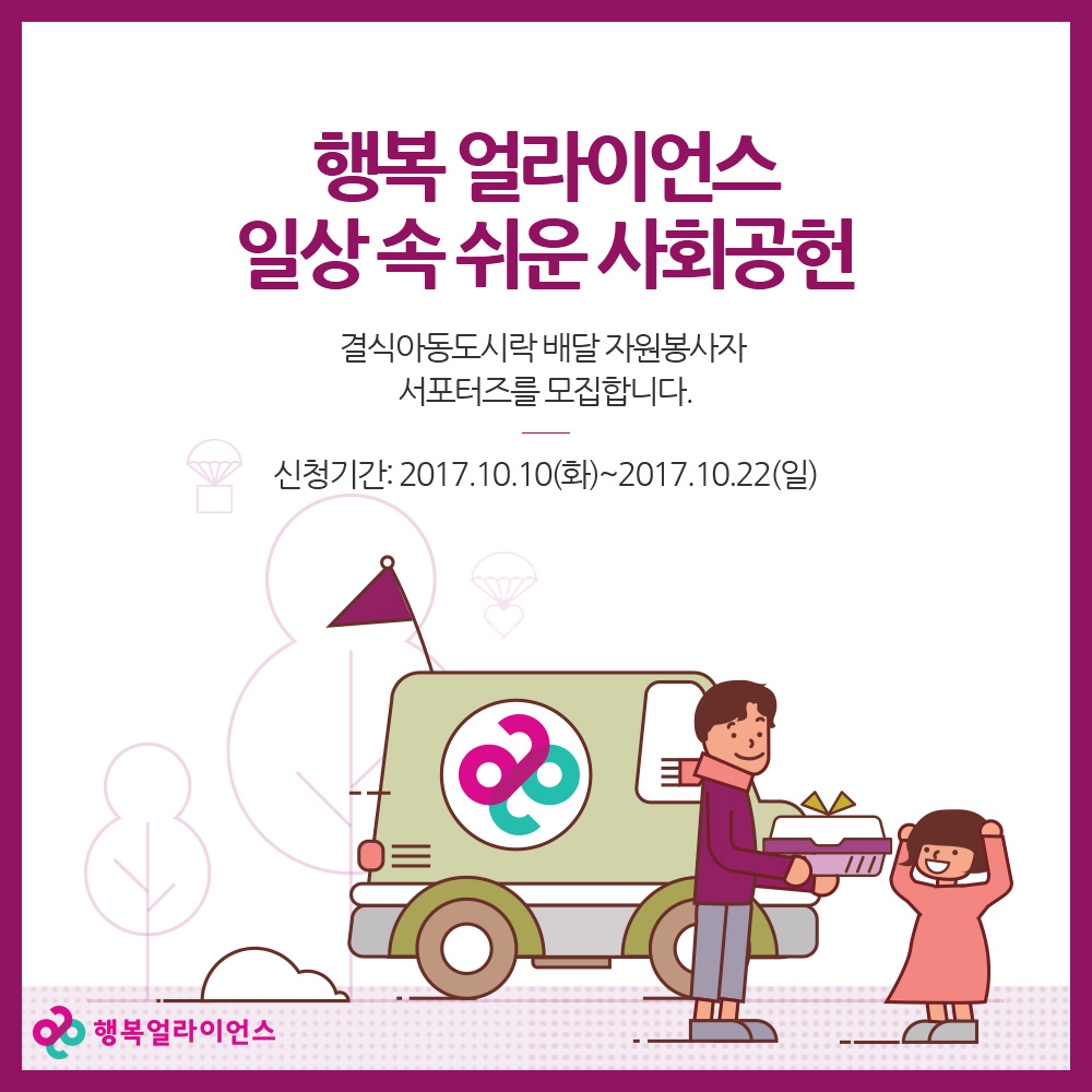 • 혜택 : 행복얼라이언스 파티 초대권 및 자원봉사확인서 발급