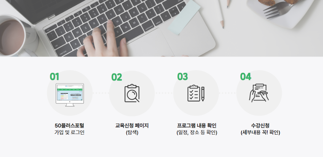 1. 50플러스포털의 회원이 아니신 경우 회원가입을 먼저 진행해주세요.