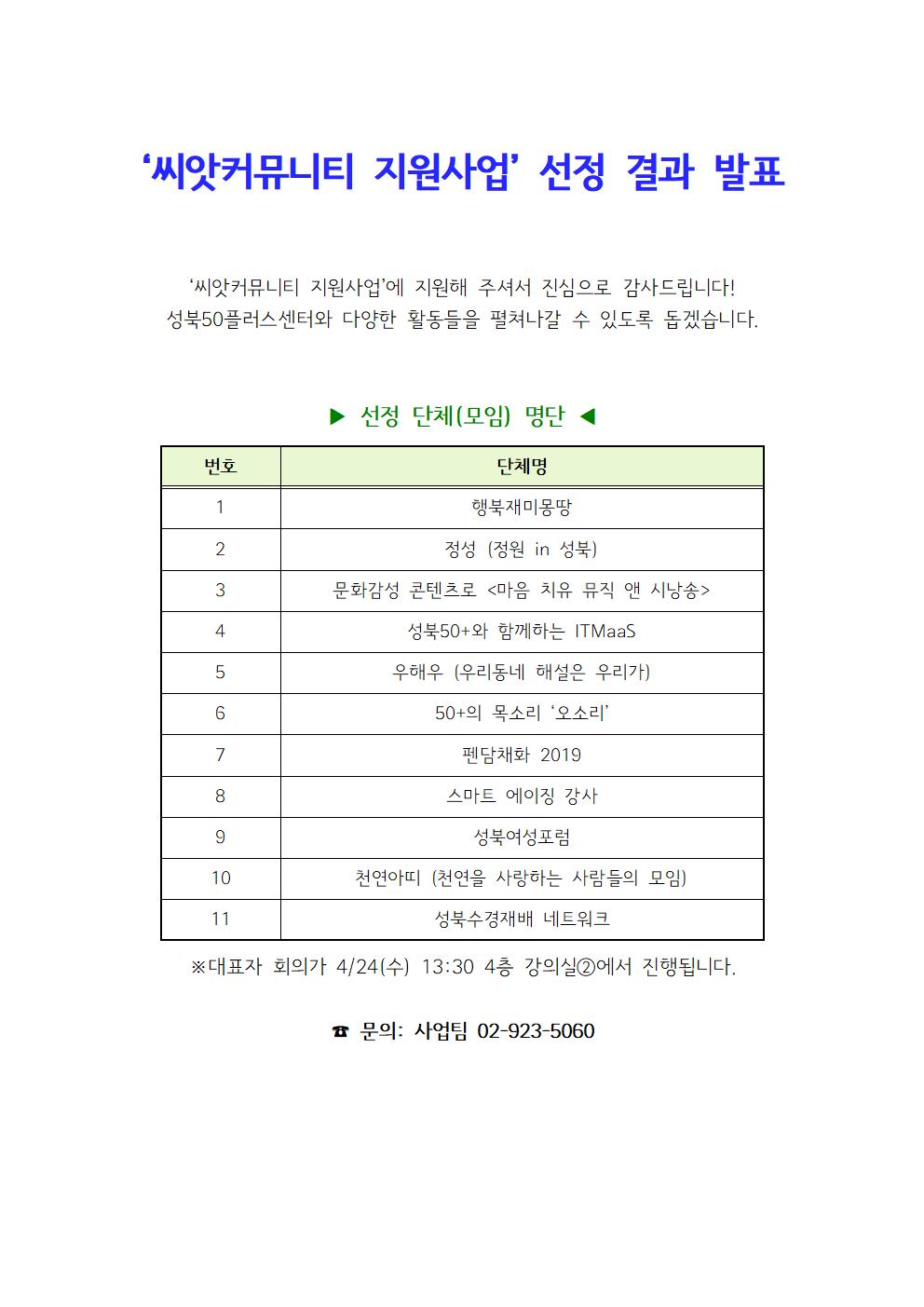 [발표] '씨앗커뮤니티 지원사업' 선정 결과 발표