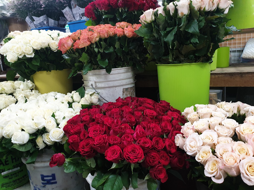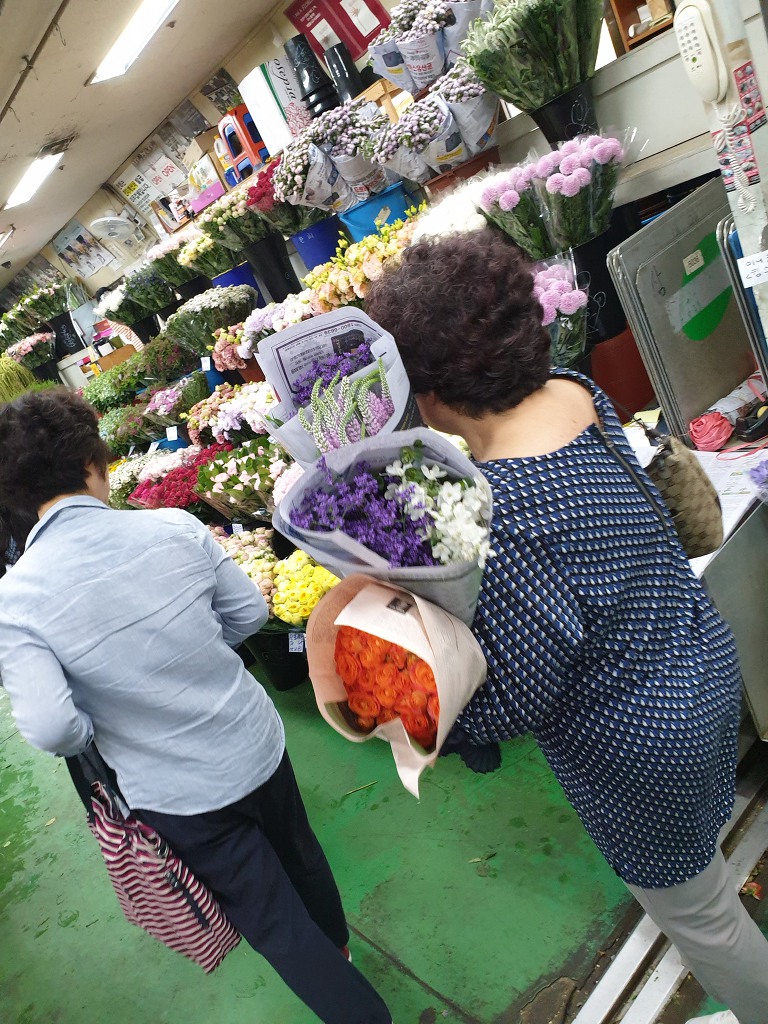 화훼시장 문을 열고 들어가니 싱그러운 꽃 향기와 예쁜 모습까지