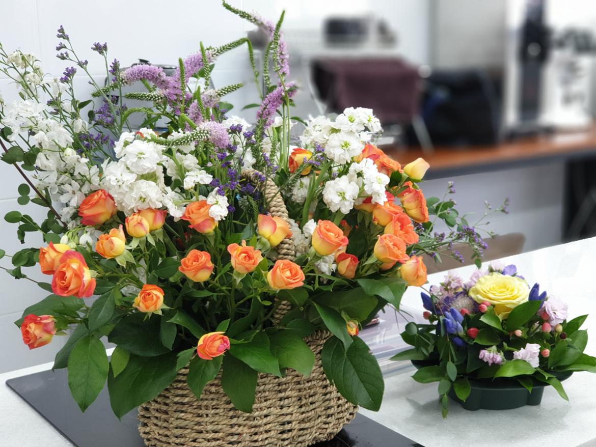 어제 교육원예 현장 학습에서 구입한 꽃이 강사님 앞에 예쁘게 감사의 꽃바구니로 변신 했어요~