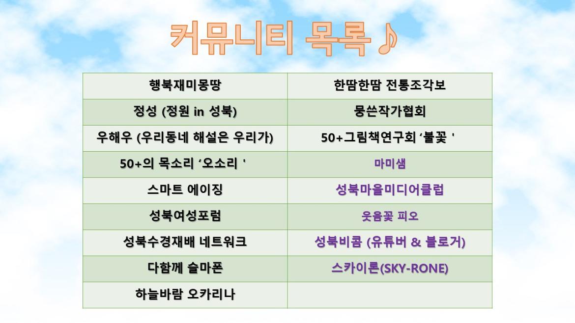 그 사이 성북센터에 더 많은 커뮤니티들이 생겨났다는 소문이!! 빠.밤~~~