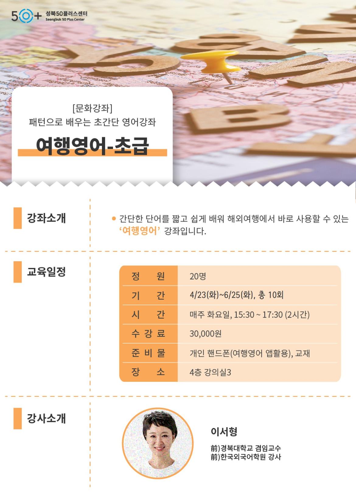 (4 회차) 2019.05.14(15:30 ~ 17:30) 4층 강의실4 이서형 영어패턴4 : 여행 필수 표현, 기내에서, 공항에서 개인핸드폰(여행영어 앱 활용), 교재