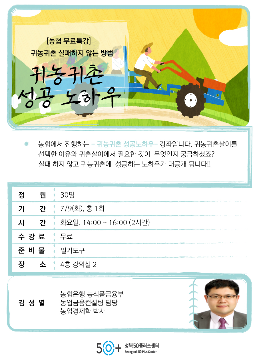 농협 무료특강 '귀농귀촌 성공 노하우’