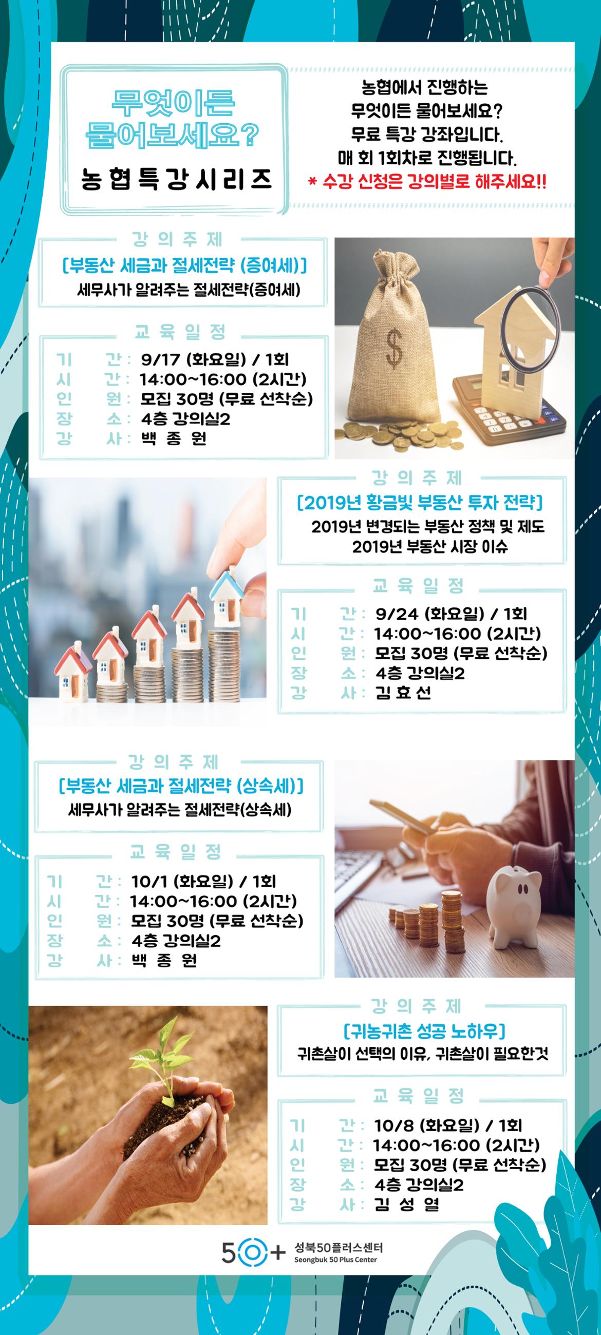 (1 회차) 2019.10.01(14:00 ~ 16:00) 4층 강의실2 백종원 증여, 상속세, 절세방법 안내 노트, 필기도구