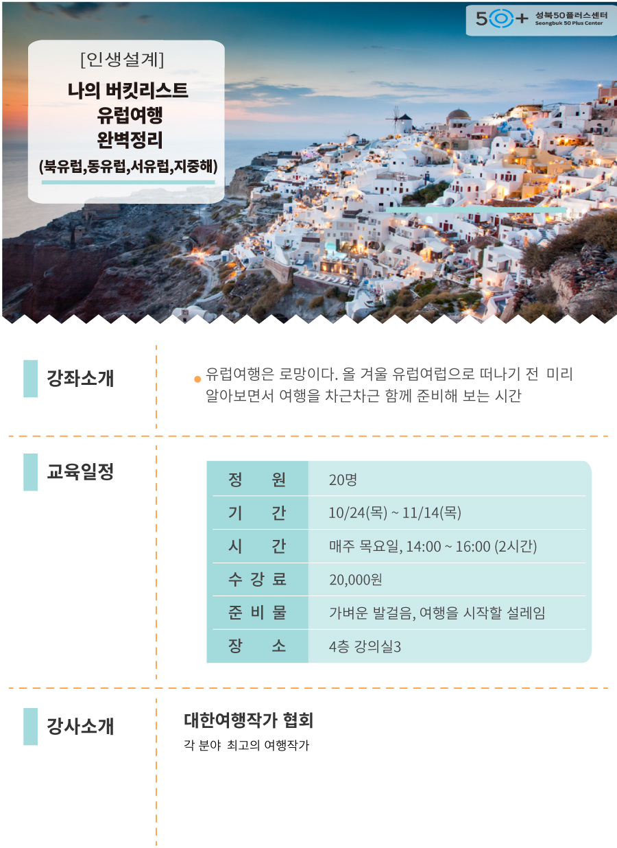 (4 회차) 2019.11.14(14:00 ~ 16:00) 4층 강의실4 대한여행작가협회 나의 버킷리스트 유럽여행 완벽정리, 남유럽편(스페인, 포르투갈, 이탈리아) 가벼운 발걸음, 그리고 여행을 시작할 설렘 준비