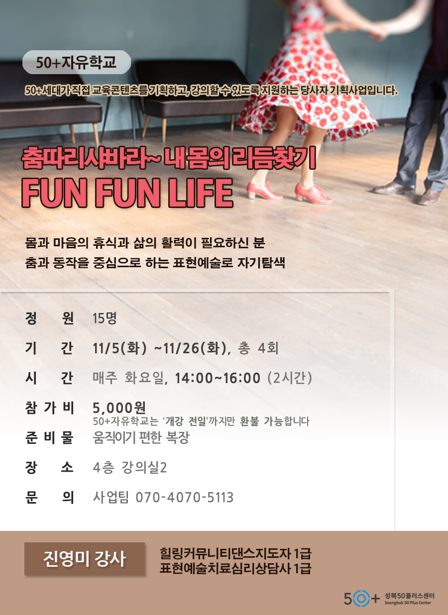 [50+자유학교] 춤따리샤바라~ 내 몸의 리듬찾기 신중년의 fun fun life
