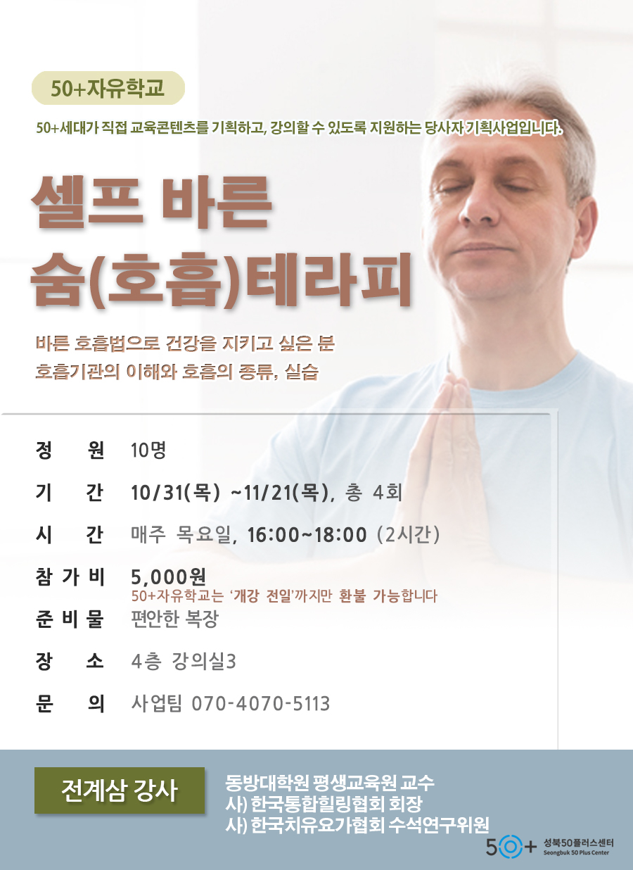 [50+자유학교] 셀프 바른 숨(호흡) 테라피