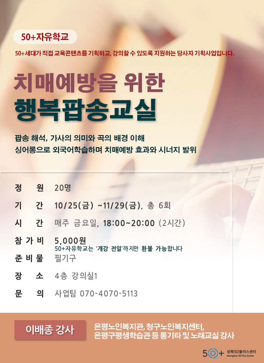 [50+자유학교] 치매예방을 위한 행복팝송교실