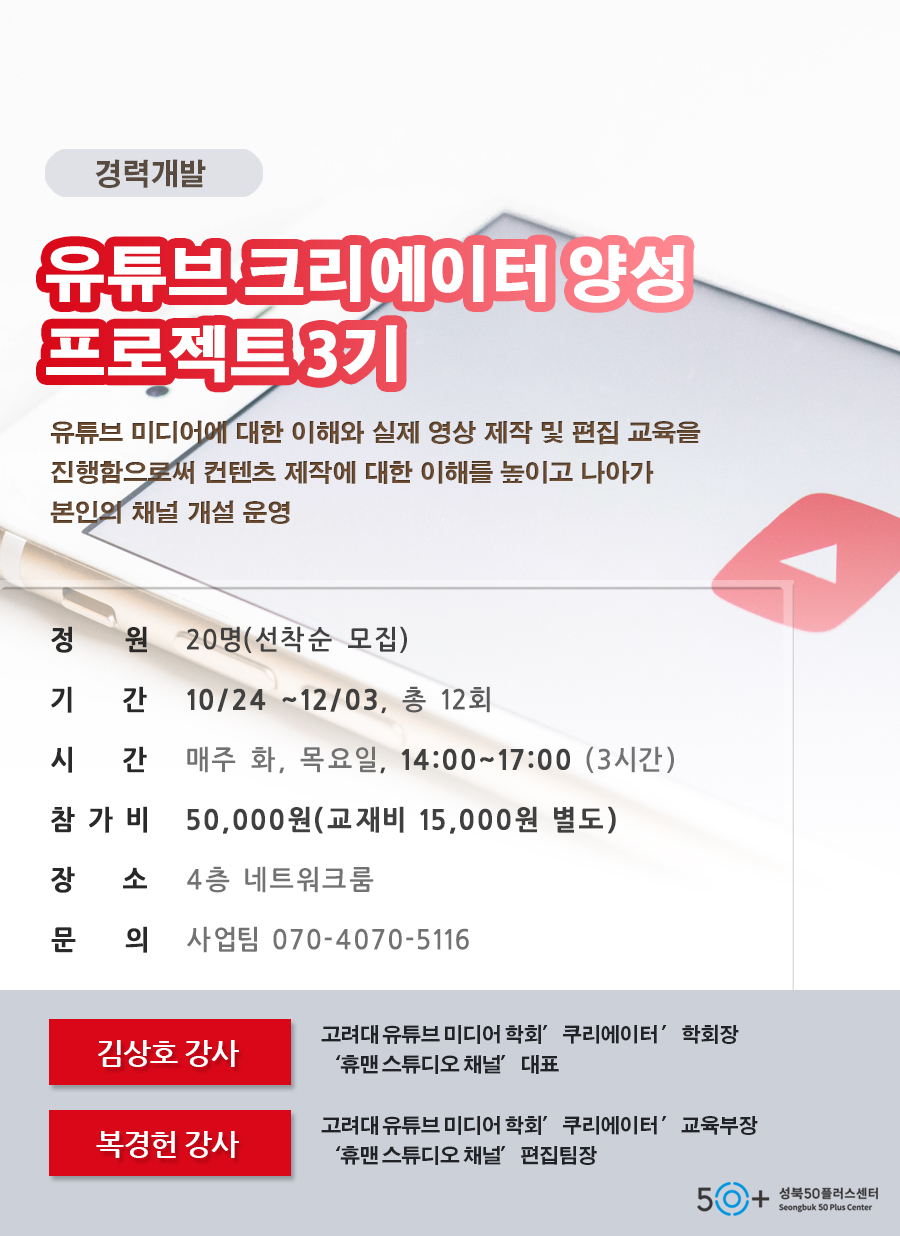 • - 성북50플러스센터 유튜브 강사