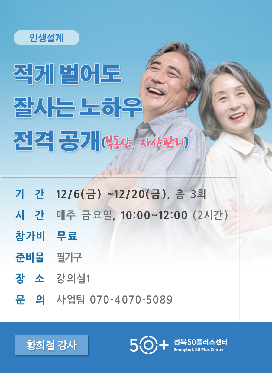 (1 회차) 2019.12.06(10:00 ~ 12:00) 4층 강의실3 황희철 적게 벌어도 잘 사는 노후 50년 노트, 필기도구