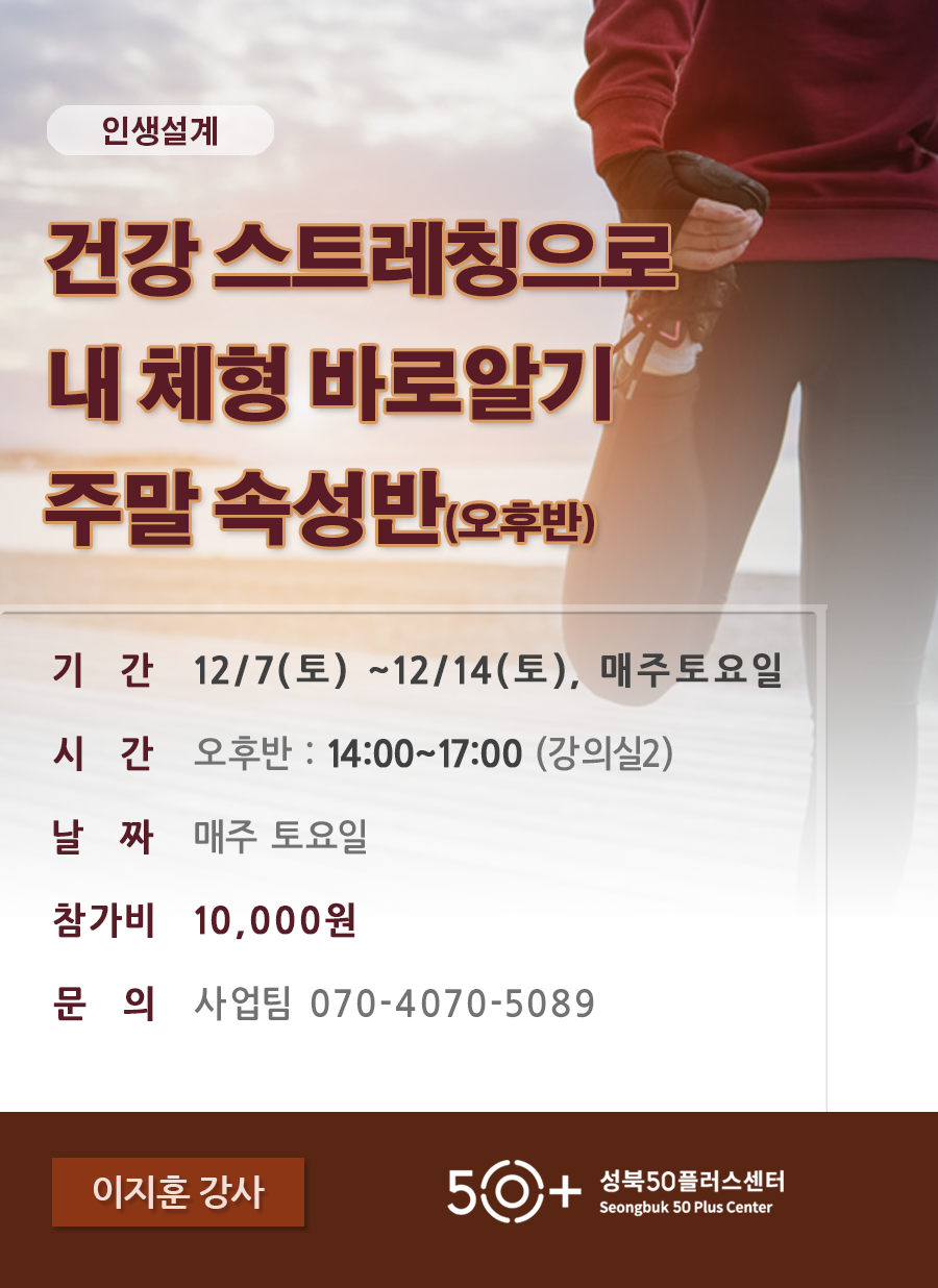 건강 스트레칭으로 내 체형 바로 알기 주말 단기 속성반 (오후반)