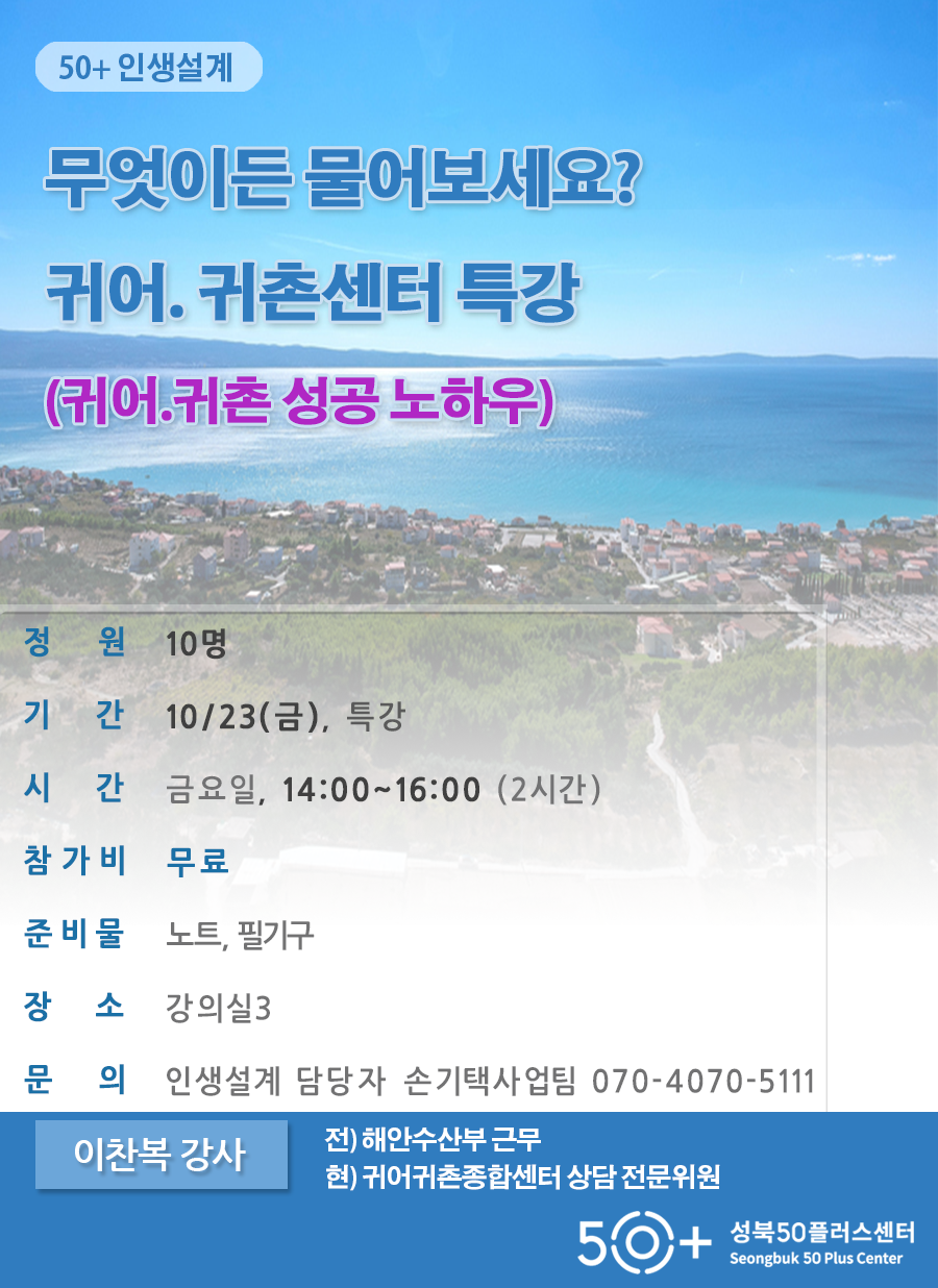 50+ 귀어 귀어귀촌 귀어정책 귀촌 귀촌정책 무료 웰빙 인생설계 정책 특강