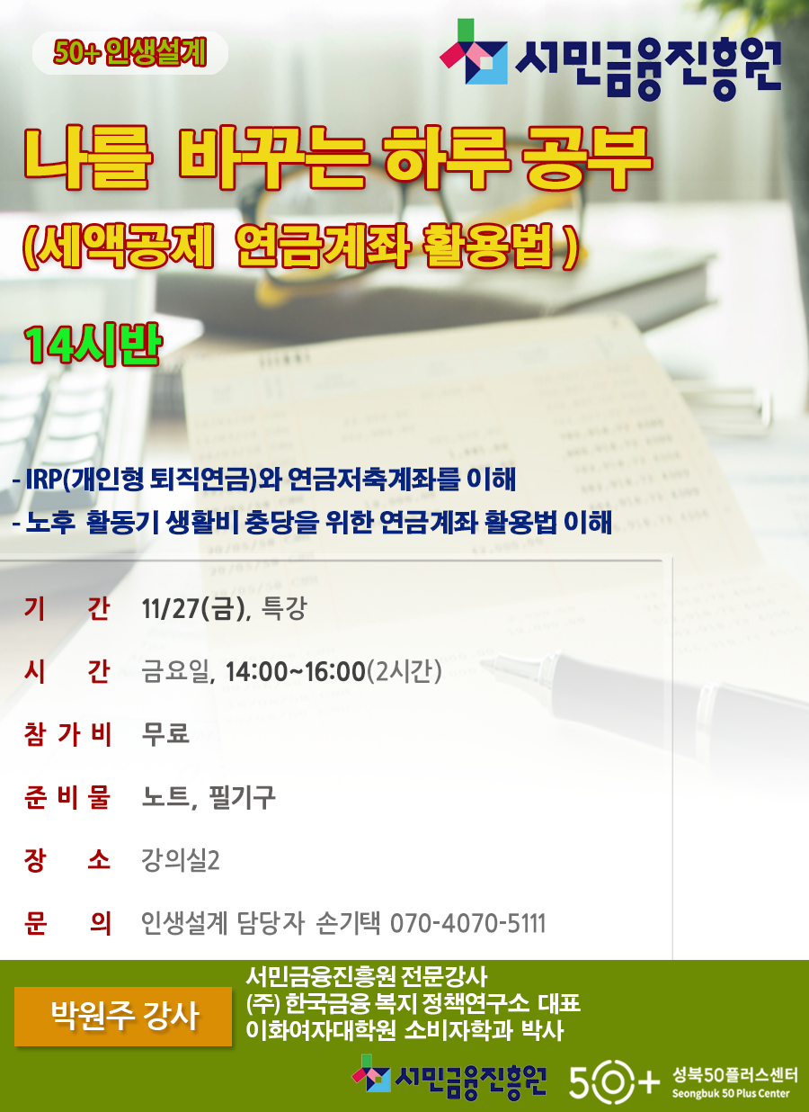 [성북][인생설계-디자인]50+인생 디자인 학교 (저금리시대 내돈 굴리는 법)