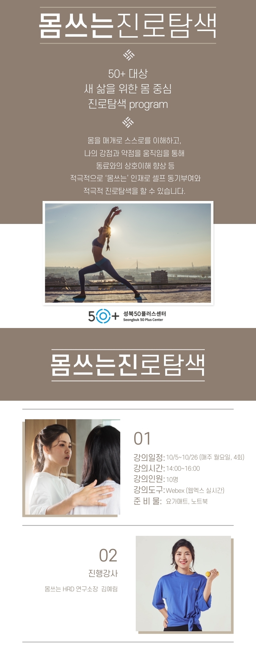 [성북][인생설계-온라인] 맞춤형 홈트레이닝, 맞춤형 체형교정으로 만성통증 근본원인 찾기 1기(웹엑스 온라인)