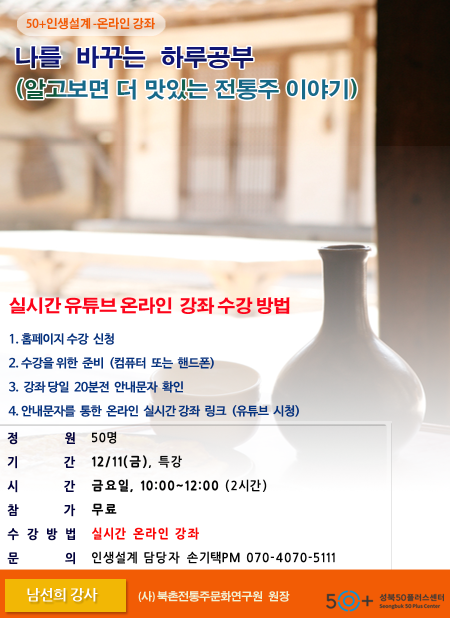 남선희 | [실시간 온라인 유튜브 강좌] 알고보면 맛있는 전통주, 스토리가 있는 전통주 남들이 알려주지 않는 전통주 정보 |