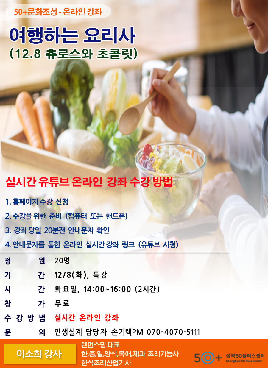 [성북][문화조성] [실시간 온라인] 여행하는 요리사 [12월1일 판 콘 토마테와 렌틸콩스프]