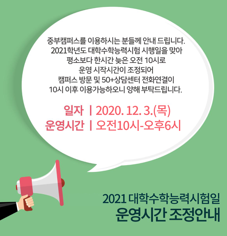 대학수학능력시험일(12.3) 운영시간 조정 안내
