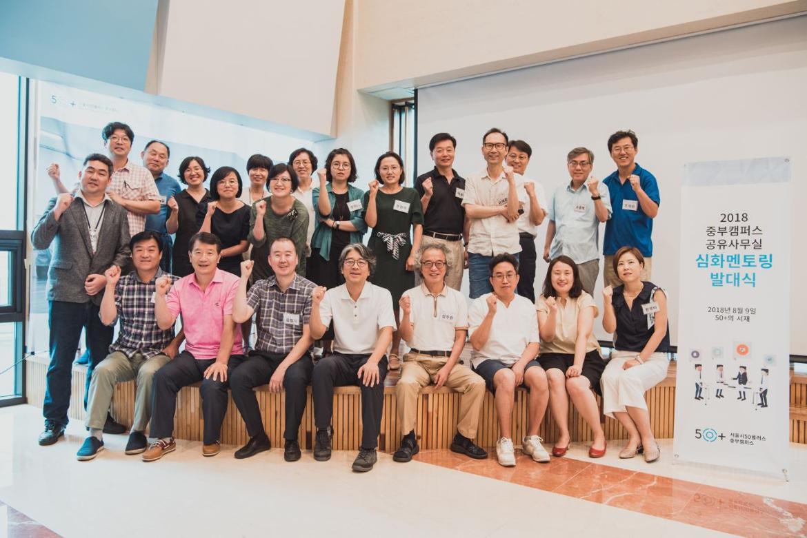 발대식은 일자리지원실 구현정 실장의 중부캠퍼스 및 50+일자리사업에 대한 소개를 시작으로 공유사무실 담당인 정재수PM의 사전멘토링 경과보고와 함께 전문가 멘토단 소개, 일정, 방법, 목표를 포함한 멘토링 전반에 대한 설명으로 이어졌습니다.