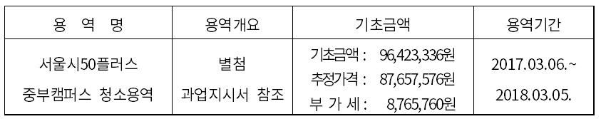 나. 적격심사는 서울시 청소용역 적격심사 세부기준의 추정가격 2억원 미만인 용역 청소용역의 평가기준에 의합니다.