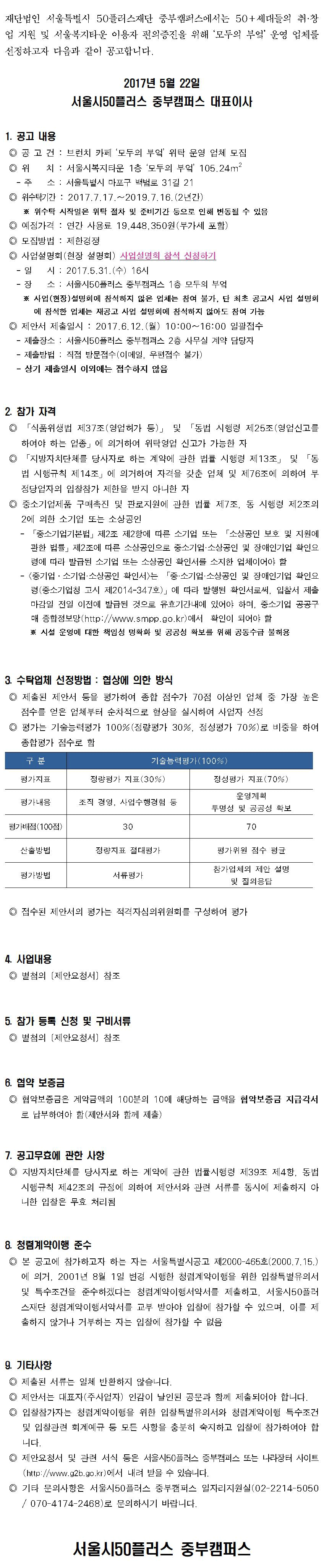 서울시50플러스 중부캠퍼스 (우04147)서울시 마포구 백범로31길 21, 서울복지타운 2층 사업자등록번호 : 232-82-00433