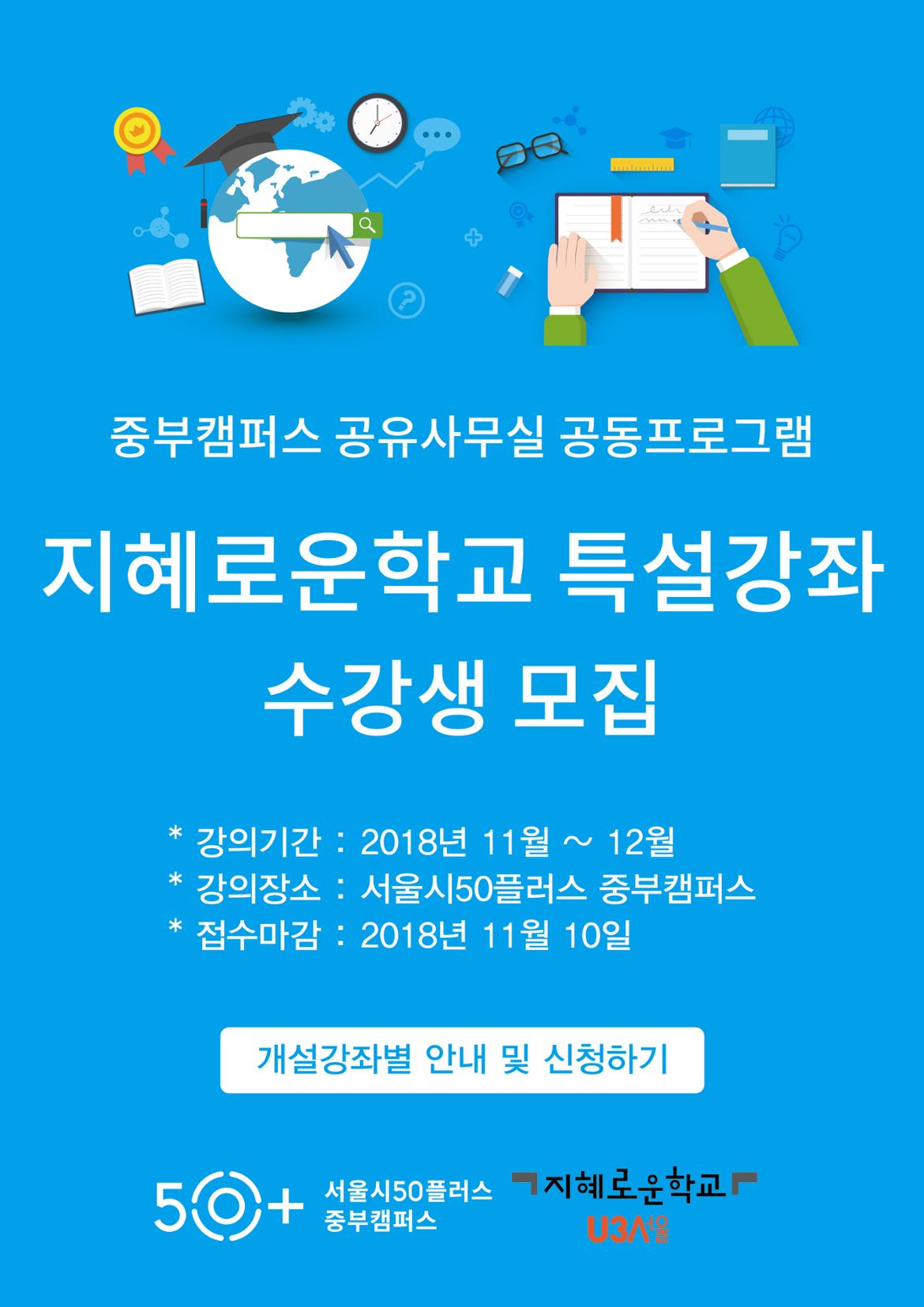 서울시50플러스 중부캠퍼스 (우04147)서울시 마포구 백범로31길 21, 서울복지타운 2층 사업자등록번호 : 232-82-00433