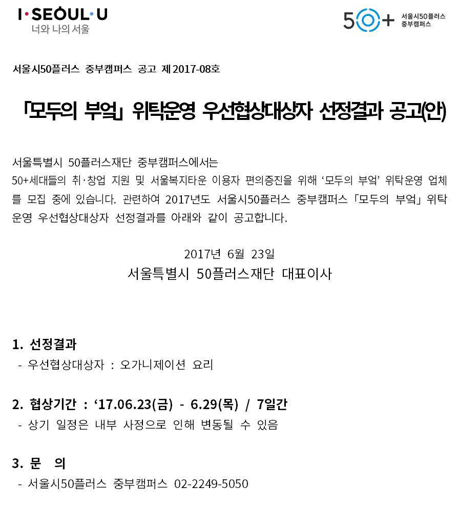 「모두의 부엌」위탁운영 우선협상대상자 선정결과 공고