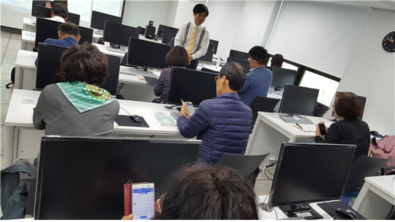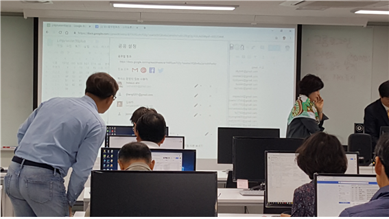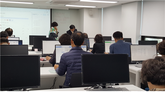 쌀쌀한 가을 컴퓨터실에서 스마트폰을 이용한 소통 (SNS) 수업 열기가 대단합니다.