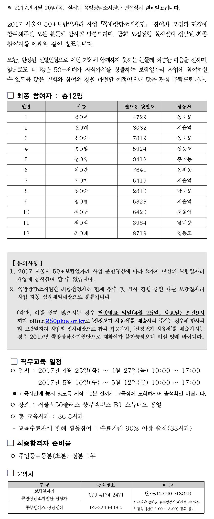 [중부보람일자리] 쪽방상담소지원단 최종 참여자 발표