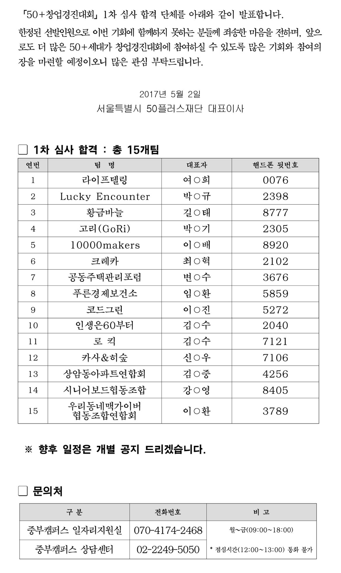서울시50플러스 중부캠퍼스 (우04147)서울시 마포구 백범로31길 21, 서울복지타운 2층 사업자등록번호 : 232-82-00433