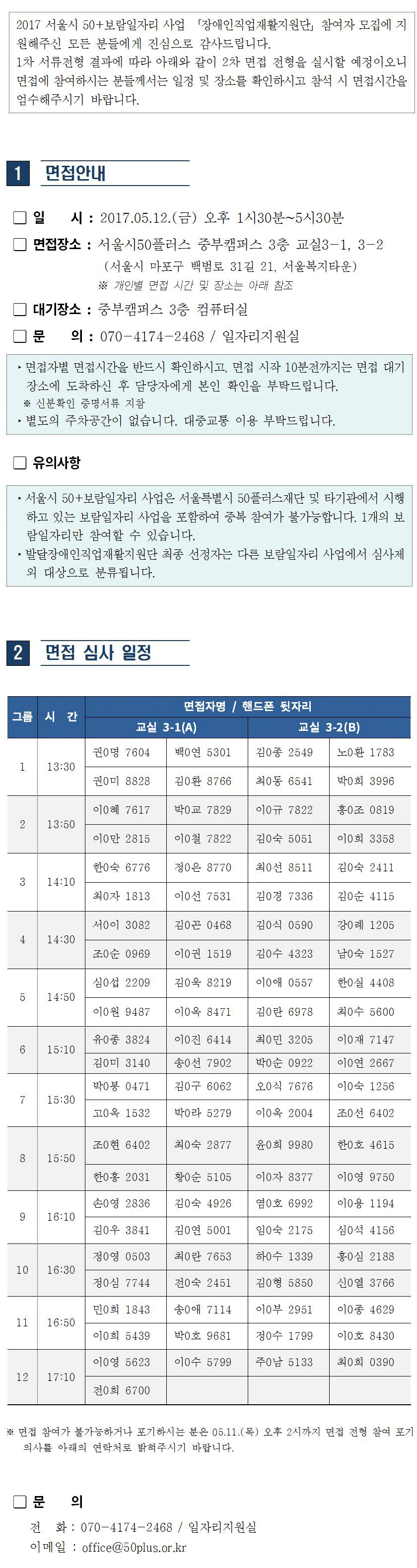 [중부보람일자리] 장애인직업재활지원단 면접 심사 안내