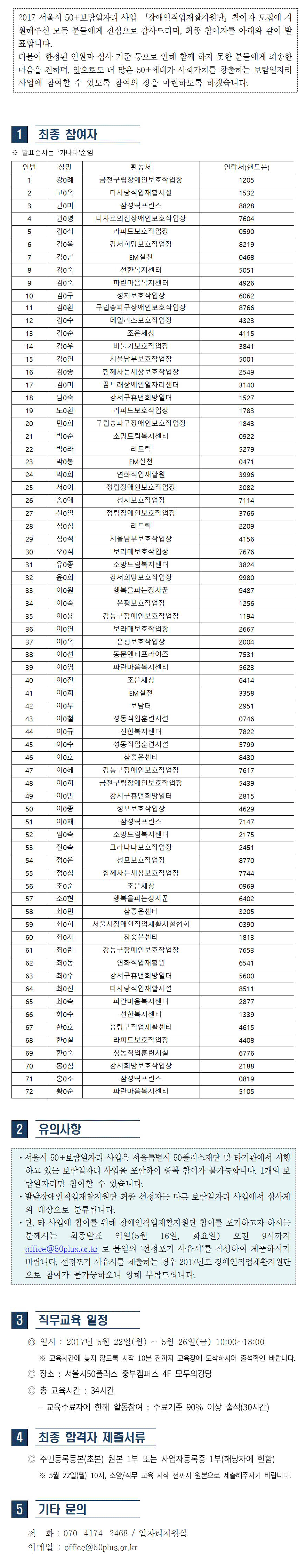 [중부보람일자리] 장애인직업재활지원단 최종참여자 명단 발표