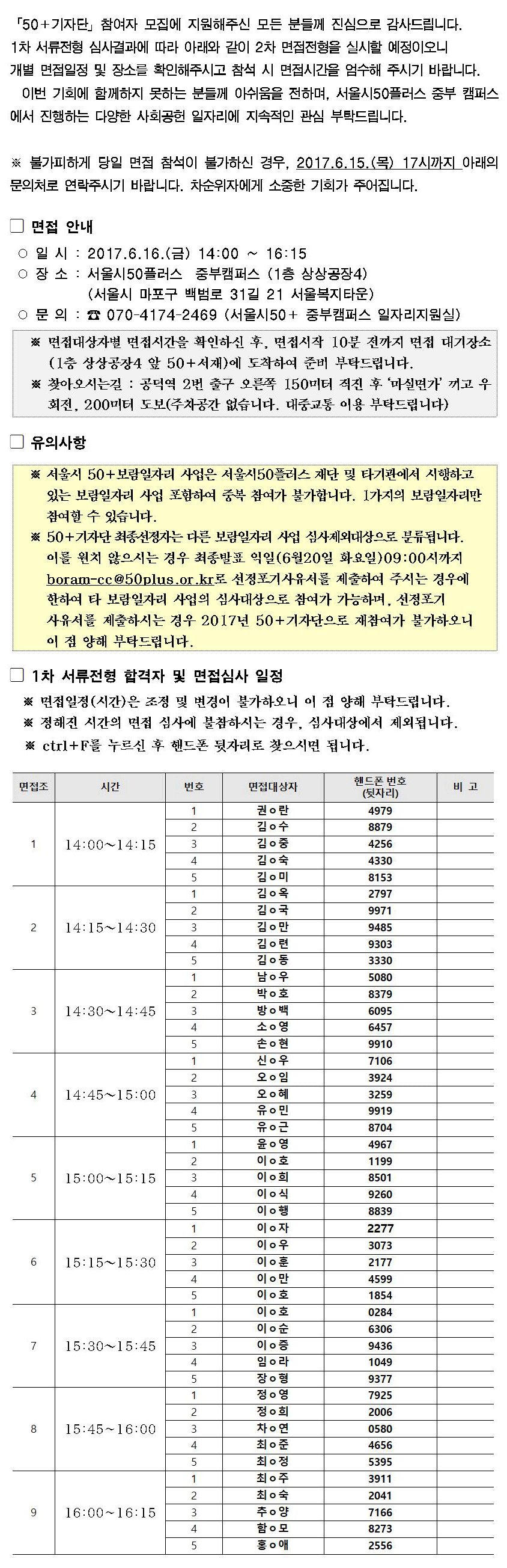 [중부보람일자리] 50+기자단 서류합격자 발표 및 면접안내