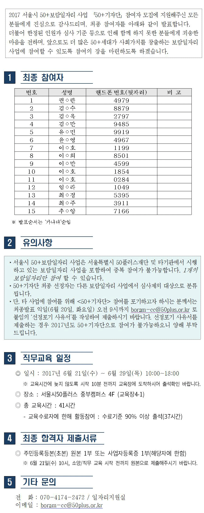 [중부보람일자리] 50+기자단 최종참여자 명단 발표